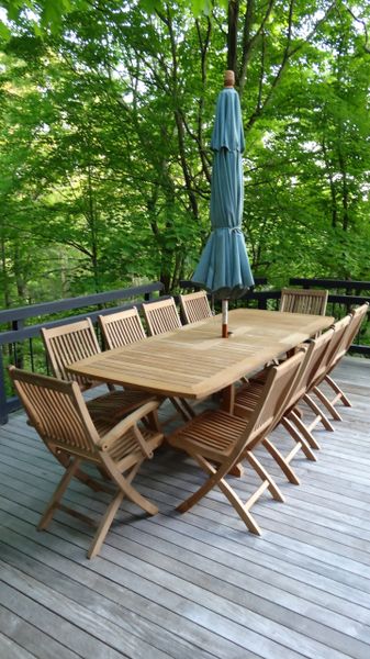 This chair is a great compliment to our teak tables, particularly as extra chairs for folding or extending tables.